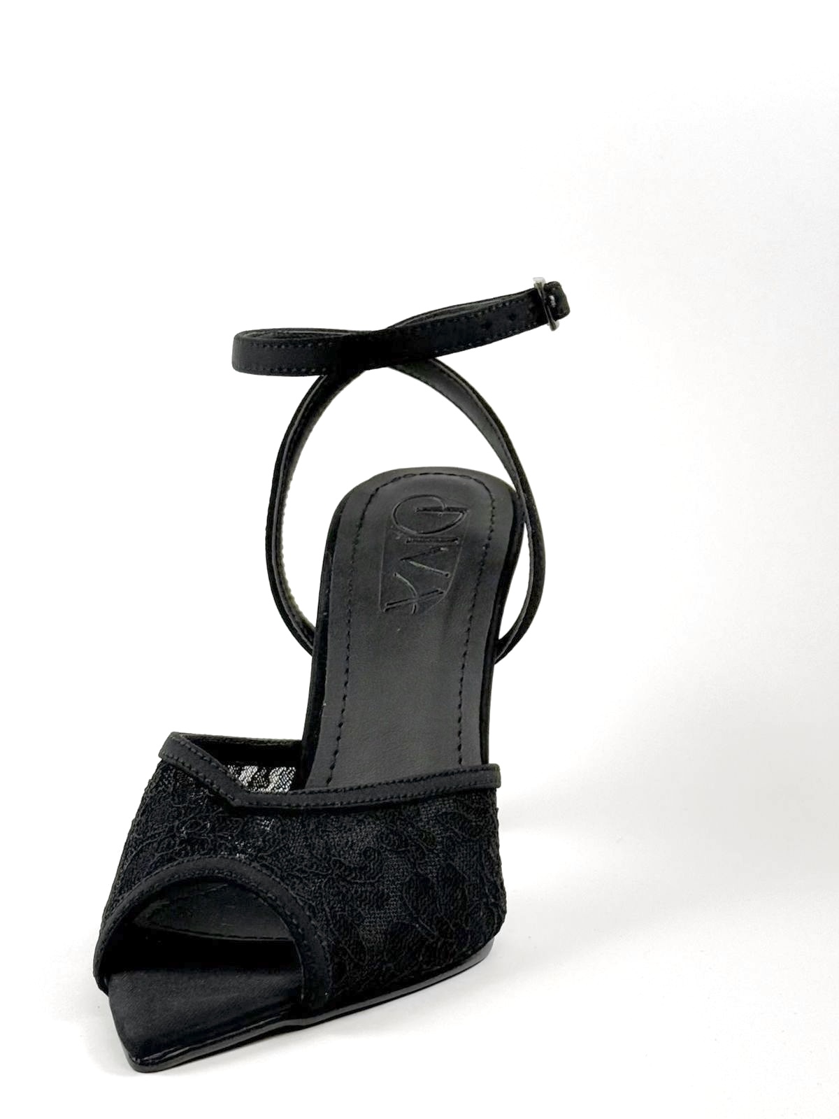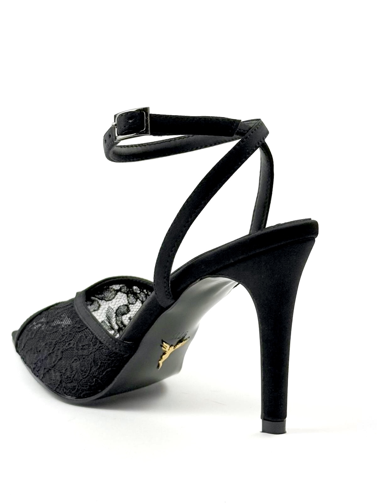 Style: Open-toe sandal with double ankle strap and sculpted lace side panels