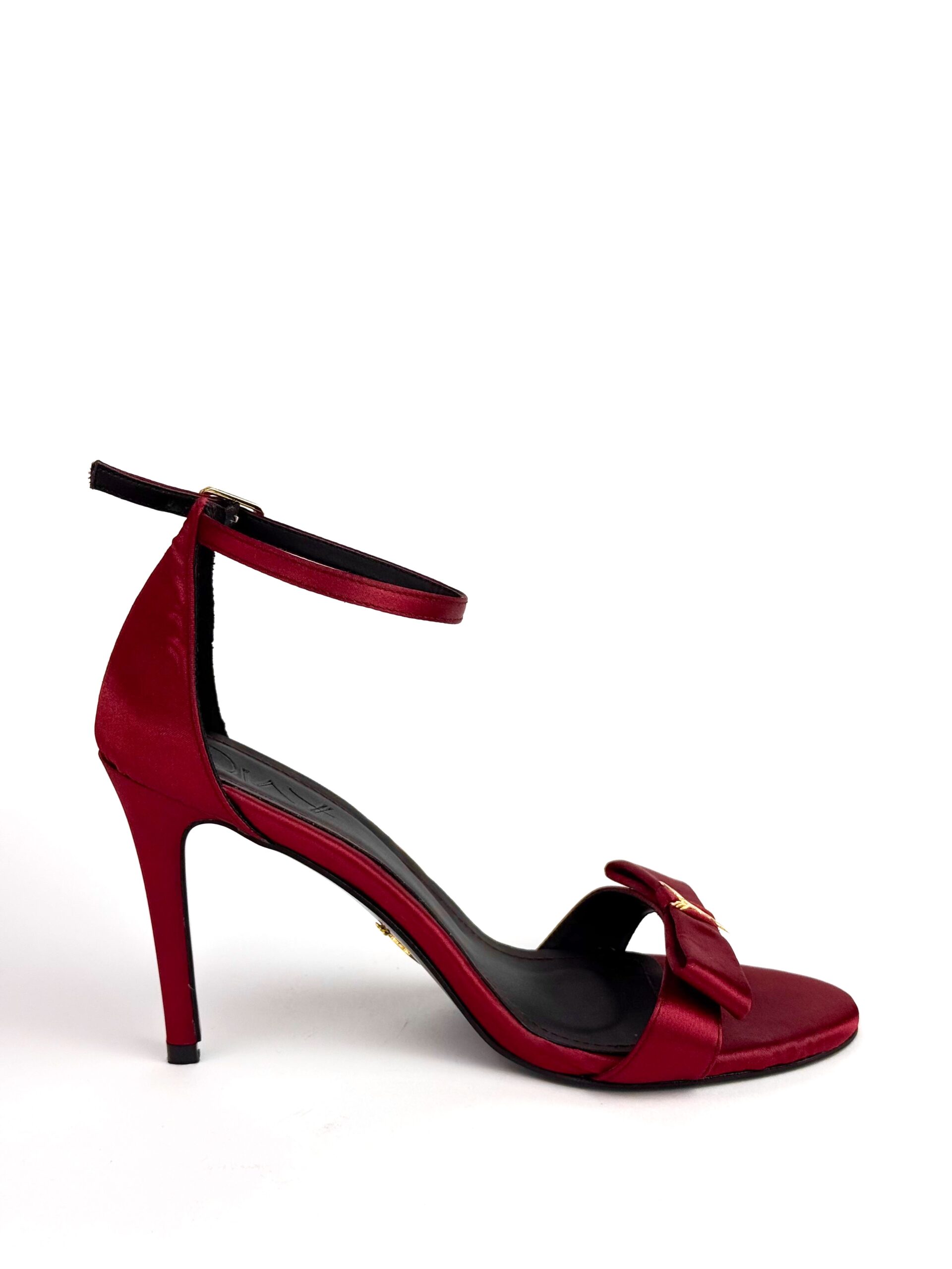 Fabric: Lustrous cherry-red satin with a smooth finish